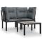 Salon de jardin 3 pcs noir et gris résine tresséeCet ensemble de salon de jardin tendance, au design élégant et contemporain, est un choix parfait pour vous détendre dans votre jardin. Matériau résistant aux intempéries : la résine tressée, également connue sous le nom de rotin poly, résiste aux intempéries et est facile à nettoyer. Elle reste belle à l'extérieur pendant une longue période. Elle offre une excellente qualité, commodité et un aspect esthétique. Cadre robuste et stable : le cadre en acier enduit de poudre de l'ensemble de salon garantit la robustesse et la stabilité. Expérience d'assise confortable : le dossier ajoute un confort d'assise supplémentaire au canapé de jardin. De plus, les coussins bien rembourrés offrent du confort pendant votre temps d'assise.Conception modulaire : le salon d'extérieur est flexible et facile à déplacer, vous pouvez donc le combiner avec d'autres segments modulaires dans la boutique en ligne pour créer vos propres configurations d'ensemble de salon de jardin !Table pratique : le dessus robuste de la table basse de jardin est parfait pour placer des repas, des boissons et d'autres objets décoratifs. Bon à savoir :Pour faciliter au maximum le montage, chaque produit est livré avec des instructions.Remarque :Pour que vos meubles d'extérieur restent beaux, nous vous recommandons de les protéger avec une housse imperméable. Maximum 110 kg par siège. Soyez conscient du risque de feu ouvert et d'autres sources de forte chaleur à proximité de l'appareil.