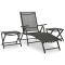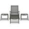 Salon de jardin 3 pcs textilène et aluminium noirProfitez d'un moment de détente agréable avec vos amis ou votre famille à l'extérieur sur cet ensemble de salon de jardin ! Le cadre en aluminium enduit de poudre rend le meuble robuste et durable, offrant un service à vie. Le fauteuil dispose d'un dossier réglable, de sorte que vous puissiez toujours trouver la position la plus confortable. Le siège est confortable avec textilène respirant. Les repose-pieds ajoutent plus de confort. Vous pouvez également les utiliser comme tables basses pour placer des boissons et des aliments à portée de main. Remarque : afin de prolonger la durée de vie des meubles d'extérieur, nous vous recommandons de les protéger avec une housse imperméable.