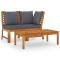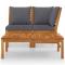 Salon de jardin 3pcs et coussin gris foncé Bois d'acacia solideCet ensemble de salon de jardin en bois ajoute un look vintage et est spécialement conçu pour votre jardin, patio ou autre espace de vie extérieur ! L'ensemble de meubles d'extérieur est construit en bois d'acacia massif avec une finition à l'huile, ce qui le rend stable et durable. Grâce au dessus de table en bois massif au design à lattes, la table basse vous offre de l'espace pour mettre vos collations, paniers de fruits, objets décoratifs, ainsi que d'autres essentiels. Les coussins sont recouverts d'un rembourrage épais pour un confort et un soutien suprêmes. Vous pouvez le combiner avec d'autres segments modulaires disponibles pour créer vos propres configurations de salon de jardin ! Remarque importante : les couleurs et les grains varient d'une pièce à l'autre, rendant chaque pièce unique ; la livraison est aléatoire. ,