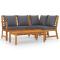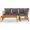 Salon de jardin 4 pcs avec coussin Bois d'acacia solideCet ensemble de salon de jardin de 4 pièces sera un excellent supplément à votre espace de vie extérieur. Il ajoutera une touche d'élégance moderne à votre patio, balcon ou jardin avec son design élégant. Doté d'un cadre en bois d'acacia massif, l'ensemble de canapés est solide, robuste et durable; et sa finition à l'huile rend l'ensemble de canapés adapté à une utilisation à l'extérieur. Une table basse au design unique à lattes est également incluse. Vous pouvez mettre quelques collations, boissons, tasses à thé, livre, etc, sur la table basse et garder tous les essentiels à portée de main. Cet ensemble est livré avec des coussins d'assise et de dossier rembourrés très confortables. Les housses en polyester à faible entretien peuvent également être retirées et lavées. De plus, grâce à sa conception modulaire, toutes les pièces peuvent être disposées et personnalisées selon vos besoins.