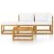 Salon de jardin 4 pcs avec coussin Crème Bois d'acacia solideCe mobilier de jardin en bois est une combinaison parfaite de style et de fonctionnalité. Avec cela dans votre jardin, vous pouvez passer du temps relaxant et apaisant avec votre famille et vos amis. Doté d'un cadre en bois d'acacia massif, l'ensemble de canapé est solide, robuste et durable; et sa finition à l'huile rend l'ensemble de canapé adapté à une utilisation en extérieur. Les coussins d'assise et de dossier amovibles sont épaississement rembourrés, afin d'offrir un grand confort d'assise. Une table basse au design à lattes unique est également incluse. De plus, grâce à sa conception modulaire, toutes les pièces peuvent être arrangées et personnalisées selon vos besoins. Cet ensemble de sièges sera sûrement le point de mire de votre jardin ou patio. Maximum 110 kg par siège. Soyez conscient du risque de feu ouvert et d'autres sources de forte chaleur à proximité de l'appareil.