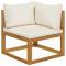 Salon de jardin 4 pcs avec coussin Crème Bois d'acacia solideCe mobilier de jardin en bois est une combinaison parfaite de style et de fonctionnalité. Avec cela dans votre jardin, vous pouvez passer du temps relaxant et apaisant avec votre famille et vos amis. Doté d'un cadre en bois d'acacia massif, l'ensemble de canapé est solide, robuste et durable; et sa finition à l'huile rend l'ensemble de canapé adapté à une utilisation en extérieur. Les coussins d'assise et de dossier amovibles sont épaississement rembourrés, afin d'offrir un grand confort d'assise. Une table basse au design à lattes unique est également incluse. De plus, grâce à sa conception modulaire, toutes les pièces peuvent être arrangées et personnalisées selon vos besoins. Cet ensemble de sièges sera sûrement le point de mire de votre jardin ou patio. Maximum 110 kg par siège. Soyez conscient du risque de feu ouvert et d'autres sources de forte chaleur à proximité de l'appareil.