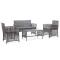 Salon de jardin 4 pcs avec coussin Résine tressée AnthraciteDétendez-vous sur notre salon de jardin de 4 pièces ! Alliant fonctionnalité et style, ce salon de jardin rendra sûrement votre extérieur monotone accueillant et confortable ! L'ensemble est conçu pour être utilisé à l'extérieur toute l'année. Grâce à la résine tressée résistante aux intempéries et imperméable, le salon de jardin est facile à nettoyer, résistant à l'usure et adapté à une utilisation quotidienne. L'ensemble de canapé d'extérieur est doté d'un cadre en acier robuste enduit de poudre et, par conséquent, il est très durable. Des coussins épaississement rembourrés sont inclus pour un confort d'assise optimal pendant vos loisirs. La housse a un design à fermeture éclair pour un lavage facile. La livraison comprend 1 banc, 2 chaises et 1 table basse. Remarque : Nous recommandons de couvrir le salon de jardin sous la pluie, la neige et le gel pour prolonger sa durée de vie.
