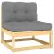Salon de jardin 4 pcs avec coussins Bois de pin massifCe salon de jardin est un excellent choix pour vous détendre et profiter du beau temps, faire une sieste ou discuter avec votre famille ou vos amis. L'ensemble de salon de jardin est fabriqué en bois de pin massif, ce qui le rend robuste et stable. Les coussins ajoutent un confort supplémentaire. Vous pouvez le combiner avec d'autres segments modulaires pour créer vos propres configurations de salon de jardin ! Remarque : afin de prolonger la durée de vie des meubles d'extérieur, nous vous recommandons de les protéger avec une housse imperméable. Maximum 110 kg par siège.