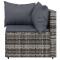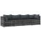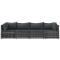 Salon de jardin 4 pcs avec coussins Gris Résine tresséeCet ensemble de salon de jardin tendance, au design élégant et contemporain, est un excellent choix pour manger ou vous détendre dans votre jardin. Matériau résistant aux intempéries : la résine tressée, également connue sous le nom de rotin poly, résiste aux intempéries et est facile à nettoyer. Elle reste belle à l'extérieur pendant une longue période. Elle offre une excellente qualité, commodité et un aspect esthétique.Cadre robuste : les cadres en acier enduit de poudre rendent l'ensemble de salon d'extérieur robuste et stable pour une utilisation quotidienne à l'extérieur.Conception modulaire : l'ensemble de salon de jardin est flexible et facile à déplacer, vous pouvez donc le combiner avec d'autres segments modulaires dans la boutique en ligne pour créer vos propres configurations d'ensemble de salon de jardin !Expérience d'assise confortable : le dossier ajoute un confort d'assise supplémentaire au canapé de jardin. De plus, les coussins bien rembourrés offrent du confort pendant votre temps d'assise. Bon à savoir :Pour faciliter au maximum le montage, chaque produit est livré avec des instructions. Remarque :Le produit est conçu pour une utilisation à l'extérieur uniquement. Ne le rangez pas à l'intérieur.Pour que vos meubles d'extérieur restent beaux, nous vous recommandons de les protéger avec une housse imperméable. Maximum 110 kg par siège.