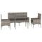 Salon de jardin 4 pcs avec coussins Gris Résine tresséeProfitez d'un moment de café confortable dans votre espace extérieur avec cet ensemble de salon de jardin ! C'est un complément parfait à votre jardin et à votre terrasse, créant une impression durable ! Matériau haut de gamme : la résine tressée est un matériau de résistance exceptionnelle et durable dans différentes conditions météorologiques.Coussins moelleux : les coussins épais et amovibles du salon de jardin sont inclus pour offrir le plus grand confort d'assise.Accoudoirs et dossier confortables : vos bras et votre dos peuvent se reposer confortablement grâce aux accoudoirs et au dossier.Dessus robuste : le dessus de table robuste de cette table de jardin vous offre de l'espace pour placer des collations, des paniers de fruits, des objets décoratifs, ainsi que divers autres articles essentiels. Bon à savoir :Pour faciliter au maximum le montage, chaque produit est livré avec des instructions. Remarque :Pour que vos meubles d'extérieur restent beaux, nous vous recommandons de les protéger avec une housse imperméable.