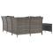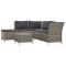 Salon de jardin 4 pcs avec coussins Gris Résine tresséeCet ensemble de salon de jardin tendance, au design élégant et contemporain, est un choix parfait pour vous détendre dans votre jardin. Matériau durable : la résine tressée est un matériau de résistance exceptionnelle et durable dans différentes conditions météorologiques. Elle nécessite peu d'entretien. Le cadre en acier de l'ensemble de meubles de jardin assure la solidité et la stabilité. Grand espace de rangement : l'espace de rangement du canapé d'angle facilite l'organisation des articles. Il convient au rangement de vos coussins, oreillers, couvertures, jouets et autres objets. Sac résistant à l'eau : le sac résistant à l'eau à l'intérieur du canapé d'angle garde vos affaires en sécurité et protège vos objets de l'humidité.Expérience de siège confortable : des coussins et des oreillers supplémentaires sont inclus pour votre confort. Bon à savoir :Nous vous recommandons de protéger le salon avec une housse imperméable afin de prolonger la durée de vie de votre mobilier d'extérieur. Chaque produit est livré avec un manuel d'instructions dans la boîte pour un montage et une utilisation faciles.