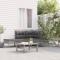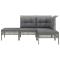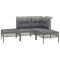 Salon de jardin 4 pcs avec coussins Gris Résine tresséeProfitez d'un moment de café confortable dans votre espace extérieur avec cet ensemble de salon de jardin ! C'est un complément parfait à votre jardin et à votre terrasse, créant une impression durable ! Matériau résistant aux intempéries : la résine tressée, également connue sous le nom de rotin poly, résiste aux intempéries et est facile à nettoyer. Elle reste belle à l'extérieur pendant une longue période. Elle offre une excellente qualité, commodité et un aspect esthétique. Cadre robuste : le cadre en acier enduit de poudre rend l'ensemble de salon d'extérieur robuste et stable pour une utilisation quotidienne à l'extérieur. Expérience d'assise confortable : les dossiers ajoutent un confort d'assise supplémentaire pour l'ensemble de salon de terrasse. De plus, les coussins bien rembourrés offrent du confort pendant votre temps d'assise. Remarque : Pour que vos meubles d'extérieur restent beaux, nous vous recommandons de les protéger avec une housse imperméable. Maximum 110 kg par siège. Soyez conscient du risque de feux ouverts et d'autres sources de forte chaleur à proximité du produit.