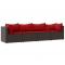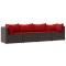 Salon de jardin 4 pcs avec coussins Marron Résine tresséeCet ensemble de salon de jardin tendance, au design élégant et contemporain, est un excellent choix pour manger ou vous détendre dans votre jardin. Matériau résistant aux intempéries : la résine tressée, également connue sous le nom de rotin poly, résiste aux intempéries et est facile à nettoyer. Elle reste belle à l'extérieur pendant une longue période. Elle offre une excellente qualité, commodité et un aspect esthétique.Cadre robuste : les cadres en acier enduit de poudre rendent l'ensemble de salon d'extérieur robuste et stable pour une utilisation quotidienne à l'extérieur.Conception modulaire : l'ensemble de salon de jardin est flexible et facile à déplacer, vous pouvez donc le combiner avec d'autres segments modulaires dans la boutique en ligne pour créer vos propres configurations d'ensemble de salon de jardin !Expérience d'assise confortable : le dossier ajoute un confort d'assise supplémentaire au canapé de jardin. De plus, les coussins bien rembourrés offrent du confort pendant votre temps d'assise. Bon à savoir :Pour faciliter au maximum le montage, chaque produit est livré avec des instructions. Remarque :Le produit est conçu pour une utilisation à l'extérieur uniquement. Ne le rangez pas à l'intérieur.Pour que vos meubles d'extérieur restent beaux, nous vous recommandons de les protéger avec une housse imperméable. Maximum 110 kg par siège.