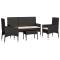 Salon de jardin 4 pcs avec coussins Noir Résine tresséeProfitez d'un moment de café confortable dans votre espace extérieur avec cet ensemble de salon de jardin ! C'est un complément parfait à votre jardin et à votre terrasse, créant une impression durable ! Matériau haut de gamme : la résine tressée est un matériau de résistance exceptionnelle et durable dans différentes conditions météorologiques.Coussins moelleux : les coussins épais et amovibles du salon de jardin sont inclus pour offrir le plus grand confort d'assise.Accoudoirs et dossier confortables : vos bras et votre dos peuvent se reposer confortablement grâce aux accoudoirs et au dossier.Dessus robuste : le dessus de table robuste de cette table basse de jardin vous offre de l'espace pour placer des collations, des paniers de fruits, des objets décoratifs, ainsi que divers autres articles essentiels. Bon à savoir :Pour faciliter au maximum le montage, chaque produit est livré avec des instructions. Remarque :Pour que vos meubles d'extérieur restent beaux, nous vous recommandons de les protéger avec une housse imperméable.