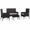 Salon de jardin 4 pcs avec coussins Noir Résine tresséeProfitez d'un moment de café confortable dans votre espace extérieur avec cet ensemble de salon de jardin ! C'est un complément parfait à votre jardin et à votre terrasse, créant une impression durable ! Matériau haut de gamme : la résine tressée est un matériau de résistance exceptionnelle et durable dans différentes conditions météorologiques.Coussins moelleux : les coussins épais et amovibles du salon de jardin sont inclus pour offrir le plus grand confort d'assise.Accoudoirs et dossier confortables : vos bras et votre dos peuvent se reposer confortablement grâce aux accoudoirs et au dossier.Dessus robuste : le dessus de table robuste de cette table basse de jardin vous offre de l'espace pour placer des collations, des paniers de fruits, des objets décoratifs, ainsi que divers autres articles essentiels. Bon à savoir :Pour faciliter au maximum le montage, chaque produit est livré avec des instructions. Remarque :Pour que vos meubles d'extérieur restent beaux, nous vous recommandons de les protéger avec une housse imperméable.