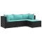 Salon de jardin 4 pcs avec coussins Noir Résine tresséeCet ensemble de salon de jardin est le complément parfait de votre arrière-cour, terrasse ou patio, offrant un espace confortable et accueillant pour discuter avec la famille et les amis ou simplement se détendre et profiter de l'extérieur. Matériau durable : la résine tressée, également connue sous le nom de poly rotin, est un matériau synthétique solide et nécessitant peu d'entretien qui ressemble au rotin naturel. Elle est légère, facile à nettoyer et couramment utilisée pour les meubles d'extérieur en raison de sa durabilité et de ses propriétés de résistance aux intempéries.Cadre robuste et stable : le cadre en acier enduit de poudre est solide, stable, durable et résistant à la corrosion et aux intempéries, ce qui garantit des performances durables.Pouf polyvalent : le tabouret est polyvalent, servant de repose-pieds confortable lorsque vous vous prélassez sur le canapé ou de siège supplémentaire dans votre jardin.Conception modulaire : cet ensemble de meubles d'extérieur a une conception modulaire, ce qui le rend complètement flexible et facile à déplacer, afin que vous puissiez créer un agencement de meubles d'extérieur personnalisé.Expérience d'assise confortable : ce mobilier d'extérieur, doté de coussins épais, offre une expérience d'assise confortable. Bon à savoir :Pour que vos meubles d'extérieur restent beaux, nous vous recommandons de les protéger avec une housse imperméable. Maximum 110 kg par siège.