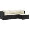 Salon de jardin 4 pcs avec coussins Noir Résine tresséeCet ensemble de salon de jardin est le complément parfait de votre arrière-cour, terrasse ou patio, offrant un espace confortable et accueillant pour discuter avec la famille et les amis ou simplement se détendre et profiter de l'extérieur. Matériau durable : la résine tressée, également connue sous le nom de poly rotin, est un matériau synthétique solide et nécessitant peu d'entretien qui ressemble au rotin naturel. Elle est légère, facile à nettoyer et couramment utilisée pour les meubles d'extérieur en raison de sa durabilité et de ses propriétés de résistance aux intempéries.Cadre robuste et stable : le cadre en acier enduit de poudre est solide, stable, durable et résistant à la corrosion et aux intempéries, ce qui garantit des performances durables.Pouf polyvalent : le tabouret est polyvalent, servant de repose-pieds confortable lorsque vous vous prélassez sur le canapé ou de siège supplémentaire dans votre jardin.Conception modulaire : cet ensemble de meubles d'extérieur a une conception modulaire, ce qui le rend complètement flexible et facile à déplacer, afin que vous puissiez créer un agencement de meubles d'extérieur personnalisé.Expérience d'assise confortable : ce mobilier d'extérieur, doté de coussins épais, offre une expérience d'assise confortable. Bon à savoir :Pour que vos meubles d'extérieur restent beaux, nous vous recommandons de les protéger avec une housse imperméable. Maximum 110 kg par siège.
