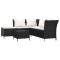 Salon de jardin 4 pcs avec coussins Noir Résine tresséeCet ensemble de salon de jardin tendance, au design élégant et contemporain, est un choix parfait pour vous détendre dans votre jardin. Matériau durable : la résine tressée est un matériau de résistance exceptionnelle et durable dans différentes conditions météorologiques. Elle nécessite peu d'entretien. Le cadre en acier de l'ensemble de meubles de jardin assure la solidité et la stabilité. Grand espace de rangement : l'espace de rangement du canapé d'angle facilite l'organisation des articles. Il convient au rangement de vos coussins, oreillers, couvertures, jouets et autres objets. Sac résistant à l'eau : le sac résistant à l'eau à l'intérieur du canapé d'angle garde vos affaires en sécurité et protège vos objets de l'humidité. Expérience de siège confortable : des coussins et des oreillers supplémentaires sont inclus pour votre confort. Remarque : Nous vous recommandons de protéger le salon avec une housse imperméable afin de prolonger la durée de vie de votre mobilier d'extérieur. Chaque produit est livré avec un manuel d'instructions dans la boîte pour un montage et une utilisation faciles.
