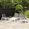 Salon de jardin 4 pcs avec coussins Plastique BlancCe salon de jardin est un excellent choix pour vous détendre et profiter du beau temps, faire une sieste ou discuter avec votre famille ou vos amis. L'ensemble de salon de jardin est en plastique, ce qui le rend facile à nettoyer et stable. Avec son dessus robuste, la table est idéale pour garder la nourriture et les boissons à portée de main. Le dossier et les coussins ajoutent au confort des sièges d'extérieur. Maximum 110 kg par siège. Soyez conscient du risque de feu ouvert et d'autres sources de forte chaleur à proximité de l'appareil.