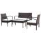 Salon de jardin 4 pcs avec coussins Résine tressée MarronCet ensemble de canapé de jardin en résine tressée sera un excellent ajout à votre espace de vie extérieur. Il ajoutera une touche d'élégance moderne à votre patio, balcon ou jardin avec son design discret mais élégant. Fabriqué en résine tressée résistante aux intempéries et à l'eau, l'ensemble est facile à nettoyer, résistant et adapté à un usage quotidien. L'armature en acier enduite de poudre rend le canapé, les chaises et la table, très robustes et durables. Grâce à sa construction légère, l'ensemble est facile à déplacer. Cet ensemble est livré avec des coussins de siège très confortables et épaississement rembourrés. Les housses de coussin sont amovibles et lavables. La livraison comprend une table basse, un canapé et deux fauteuils. Remarque: nous vous recommandons de couvrir l'ensemble pendant la pluie, la neige et le gel.