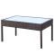 Matériau : structure en acier + résine tressée + dessus de table en verre laiteux