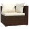Salon de jardin 4 pcs avec coussins Résine tressée MarronProfitez de votre temps de détente sur cet ensemble de salon de jardin tendance ! Il peut répondre à une variété de besoins différents. Cadre robuste : cet ensemble de meubles de patio est doté d'un cadre solide en acier enduit de poudre et de pieds en plastique chromé, ce qui est très durable.Matériau haut de gamme : l'ensemble de canapés de jardin est conçu avec de la résine tressée résistante à l'eau, ce qui le rend facile à nettoyer, résistant à l'usure et adapté à une utilisation quotidienne à l'extérieur.Design modulaire : la conception modulaire permet de placer l'ensemble dans n'importe quelle disposition ou de le combiner avec d'autres segments modulaires pour répondre à vos besoins.Confort d'assise accru : les coussins et les oreillers bien rembourrés et amovibles offrent un confort optimal pour votre expérience d'assise à l'extérieur. Remarque :Afin de prolonger la durée de vie de votre mobilier d'extérieur, nous vous recommandons de le protéger avec une housse imperméable.