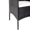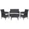Salon de jardin 4 pcs avec coussins Résine tressée NoirCet ensemble de canapés en résine tressée, composé d'un canapé à deux places, de 2 fauteuils, d'une table basse et de 3 coussins de siège, vous offrira un coin salon élégant pour votre jardin ou patio. Grâce à la résine tressée résistante à l'eau, l'ensemble de canapés de terrasse est facile à nettoyer, résistant à l'usure et adapté à une utilisation quotidienne en extérieur. La structure en acier rend cet ensemble de mobilier robuste et stable, mais comme la construction est également légère, tous les articles sont faciles à déplacer pour s'adapter à tous les décors. Cet ensemble est également livré avec des coussins de siège très confortables et épaississement rembourrés pour un confort optimal. Les housses en polyester nécessitant peu d'entretien peuvent également être enlevées et lavées. L'ensemble en résine tressée offre une flexibilité totale et peut être facilement déplacé pour s'adapter à tous les décors. Cet ensemble est facile à assembler. Remarque : nous vous recommandons de couvrir l'ensemble pendant la pluie, la neige et le gel pour que son meilleur service dure.