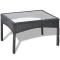 Matériau : résine tressée (polyéthylène), cadre en acier recouvert de poudre et dessus de table en verre
