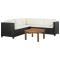Salon de jardin 4 pcs avec coussins Résine tressée NoirCet ensemble de canapés en résine tressée, composé de 2 canapés à 2 places, d'1 canapé d'angle, d'1 table basse, de 6 oreillers et de 5 coussins d'assise, offrira un espace de détente élégant dans votre jardin ou patio. Grâce à la résine tressée résistante aux intempéries, l'ensemble de canapé de terrasse est facile à nettoyer, résistant à l'usure et adapté à une utilisation quotidienne en extérieur. Les cadres en acier enduit de poudre rendent l'ensemble robuste et stable. Il est livré avec une table basse en bois d'acacia massif, qui est résistant aux intempéries et durable pour des années à utiliser. L'ensemble est léger et facile à déplacer pour s'adapter à n'importe quel décor. Cet ensemble est également livré avec des oreillers et des coussins d'assise très confortables et rembourrés épaississement pour un confort optimal. Les housses en polyester nécessitant peu d'entretien peuvent également être enlevées et lavées. Cet ensemble de jardin doit être assemblé. Remarque : nous vous recommandons de couvrir l'ensemble pendant la pluie, la neige et le gel pour que son meilleur service dure.