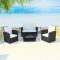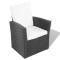 Salon de jardin 4 pcs avec coussins Résine tressée NoirNotre ensemble de mobilier de jardin élégant en rotin deviendra l'attraction principale de votre jardin ou de votre patio ! Cet ensemble à dîner au design élégant sera un excellent choix pour des repas en plein air ou pour vous détendre dans le jardin. Les cadres en acier laqué rendent la table, les fauteuils et le canapé solides et robustes et grâce à leur construction légère tous les articles sont faciles à déplacer. Fait en rotin synthétique résistant aux intempéries et à l'eau, l'ensemble de canapés est facile à nettoyer. Le dessus en verre est également facile à nettoyer avec un chiffon humide. Les coussins de siège épais, doux et rembourrés en mousse sont très confortables et faits en polyester hydrofuge. Les housses amovibles et lavables sont équipées de fermetures éclair. La livraison comprend 1 table basse, 2 fauteuils, 1 canapé à deux places et 6 coussins. Remarque: nous vous recommandons de couvrir l'ensemble pendant la pluie, la neige et le gel.