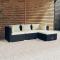 Salon de jardin 4 pcs avec coussins Résine tressée NoirDétendez-vous et profitez de vos loisirs avec cet ensemble de meubles de jardin très tendance ! Il est conçu pour répondre à une variété de vos différents besoins. Cadre robuste : cet ensemble de meubles de patio est doté d'un cadre solide en acier enduit de poudre et de pieds en plastique chromé, ce qui est très durable.Matériau haut de gamme : l'ensemble de canapés de jardin est conçu avec de la résine tressée imperméable, ce qui le rend facile à nettoyer, résistant à l'usure et adapté à une utilisation quotidienne à l'extérieur.Design modulaire : la conception modulaire permet de placer l'ensemble dans n'importe quelle disposition ou de le combiner avec d'autres segments modulaires pour répondre à vos besoins.Coussins et oreillers confortables : les coussins et les oreillers bien rembourrés et amovibles offrent un confort optimal pour votre assise en plein air. Remarque :Afin de prolonger la durée de vie de votre mobilier d'extérieur, nous vous recommandons de le protéger avec une housse imperméable.