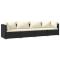 Salon de jardin 4 pcs avec coussins Résine tressée NoirDétendez-vous et profitez du beau temps avec vos amis et votre famille dans votre espace extérieur sur cet ensemble de salon de jardin en résine tressée avec coussins ! Design modulaire : ce design permet de placer le siège dans n'importe quelle disposition ou de le combiner avec d'autres segments modulaires pour répondre à vos besoins !Matériau haut de gamme : l'ensemble de meubles de patio est conçu avec de la résine tressée résistante à l'eau, ce qui le rend résistant à l'usure et adapté à une utilisation quotidienne à l'extérieur.Cadre robuste : cet ensemble de meubles de patio est doté d'un cadre solide en acier enduit de poudre et de pieds en plastique chromé, ce qui est très durable. Grâce à sa conception légère, il est facile à déplacer.Coussins confortables : fabriqués en tissu, les coussins bien rembourrés et amovibles sont doux au toucher et vous apportent un confort accru. Remarque :Afin de prolonger la durée de vie de votre mobilier d'extérieur, nous vous recommandons de le protéger avec une housse imperméable.