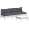Salon de jardin 4 pcs avec coussins anthracite Bois de pinCe salon de jardin est un excellent choix pour vous détendre et profiter du beau temps, faire une sieste ou discuter avec votre famille ou vos amis. Le salon de patio est fabriqué en bois de pin massif, ce qui le rend robuste et stable. Les coussins ajoutent un confort supplémentaire. Vous pouvez le combiner avec d'autres segments modulaires pour créer vos propres configurations de salon de jardin ! Remarque : afin de prolonger la durée de vie des meubles d'extérieur, nous vous recommandons de les protéger avec une housse imperméable. Maximum 110 kg par siège.
