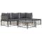 Salon de jardin 4 pcs avec coussins anthracite résine tresséeProfitez d'un moment de café confortable dans votre espace extérieur avec cet ensemble de salon de jardin ! C'est un complément parfait à votre jardin et à votre terrasse, créant une impression durable ! Matériau résistant aux intempéries : le poly rotin est résistant aux intempéries et facile à nettoyer. Il reste beau à l'extérieur pendant une longue période de temps. Il est plus économique que d'autres matériaux, tout en offrant une excellente qualité, une commodité et un aspect esthétique.Cadre robuste et stable : le cadre en acier de l'ensemble de salon assure robustesse et stabilité.Expérience d'assise confortable : le dossier ajoute un confort d'assise supplémentaire pour l'ensemble de salon. De plus, les coussins bien rembourrés offrent un confort pour votre temps d'assise.Dessus de table robuste : le dessus de table robuste de la table basse est parfait pour placer des repas, des boissons, des vases, des bols de fruits ou d'autres objets décoratifs.Conception modulaire : l'ensemble de salon de jardin est flexible et facile à déplacer, vous pouvez donc le combiner avec d'autres segments modulaires de la boutique en ligne pour créer vos propres configurations personnelles de salon de jardin ! Remarque :Pour que vos meubles d'extérieur restent beaux, nous vous recommandons de les protéger avec une housse imperméable. Maximum 110 kg par siège. Soyez conscient du risque de feu ouvert et d'autres sources de forte chaleur à proximité de l'appareil.