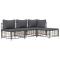 Salon de jardin 4 pcs avec coussins anthracite résine tresséeProfitez d'un moment de café confortable dans votre espace extérieur avec cet ensemble de salon de jardin ! C'est un complément parfait à votre jardin et à votre terrasse, créant une impression durable ! Matériau résistant aux intempéries : le poly rotin est résistant aux intempéries et facile à nettoyer. Il reste beau à l'extérieur pendant une longue période de temps. Il est plus économique que d'autres matériaux, tout en offrant une excellente qualité, une commodité et un aspect esthétique.Cadre robuste et stable : le cadre en acier de l'ensemble de salon assure robustesse et stabilité.Expérience d'assise confortable : le dossier ajoute un confort d'assise supplémentaire pour l'ensemble de salon. De plus, les coussins bien rembourrés offrent un confort pour votre temps d'assise.Conception modulaire : l'ensemble de salon de jardin est flexible et facile à déplacer, vous pouvez donc le combiner avec d'autres segments modulaires de la boutique en ligne pour créer vos propres configurations personnelles de salon de jardin ! Remarque :Pour que vos meubles d'extérieur restent beaux, nous vous recommandons de les protéger avec une housse imperméable. Maximum 110 kg par siège. Soyez conscient du risque de feu ouvert et d'autres sources de forte chaleur à proximité de l'appareil.