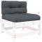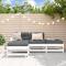 Salon de jardin 4 pcs avec coussins blanc bois massifCe salon de jardin en bois, qui se démarque par son design à lattes et ses coussins moelleux, sera un excellent supplément à votre jardin, patio ou terrasse pour profiter d'un moment agréable avec votre famille ou vos amis. Bois de pin massif : le bois de pin massif est un matériau naturel magnifique. Le bois de pin a un grain droit et les noeuds donnent au matériau son aspect caractéristique et rustique.Cadre robuste et stable : le cadre en bois rend l'ensemble de salon robuste et stable pour une utilisation quotidienne à l'extérieur.Expérience d'assise confortable : le dossier et l'accoudoir ajoutent un confort d'assise supplémentaire à l'ensemble de meubles de jardin. De plus, les coussins bien rembourrés vous permettent de vous asseoir confortablement.Design modulaire : le canapé est flexible et facile à déplacer. Vous pouvez le combiner avec d'autres segments modulaires de la boutique en ligne pour créer vos propres configurations de salon de jardin ! Bon à savoir :Pour que vos meubles d'extérieur restent beaux, nous vous recommandons de les protéger avec une housse imperméable. Maximum 110 kg par siège.