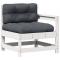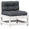 Salon de jardin 4 pcs avec coussins blanc bois de pin massifCet ensemble de salon de jardin en bois avec un design à lattes sera un excellent complément à votre jardin, patio ou terrasse pour profiter d'un moment agréable avec votre famille ou vos amis. Bois de pin massif : le bois de pin massif est un matériau naturel magnifique. Le bois de pin a un grain droit et les noeuds donnent au matériau son aspect caractéristique et rustique.Design à lattes : le design à lattes de la chaise de jardin en bois empêche l'accumulation de l'eau, ce qui permet de garder le siège au sec et d'éviter un pourrissement inutile.Expérience d'assise confortable : le dossier et l'accoudoir ajoutent un confort d'assise supplémentaire à l'ensemble de meubles de jardin. De plus, le coussin bien rembourré vous permet de vous asseoir confortablement.Utilisation polyvalente : le pouf d'extérieur avec couvercle peut non seulement être utilisé pour s'asseoir ou se détendre, mais il peut également être utilisé comme table basse pour contenir vos boissons, votre nourriture et le meuble de jardin dispose d'un espace de rangement sous le siège. Conception modulaire : cet ensemble de meubles d'extérieur a une conception modulaire, ce qui le rend complètement flexible et facile à déplacer, afin que vous puissiez créer un agencement de meubles d'extérieur personnalisé. Bon à savoir :Pour que vos meubles d'extérieur restent beaux, nous vous recommandons de les protéger avec une housse imperméable. Maximum 110 kg par siège.