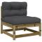 Salon de jardin 4 pcs avec coussins bois de pin imprégnéCet ensemble de canapés de jardin est le complément parfait de votre arrière-cour, terrasse ou patio, offrant un espace confortable et accueillant pour discuter avec la famille et les amis ou simplement se détendre et profiter de l'extérieur. Matériau robuste et durable : le bois de pin massif est connu pour sa résistance et sa durabilité. Ses grains droits et ses noeuds distinctifs contribuent à son charme rustique. Il a été imprégné avec une solution de conservation et a subi un traitement en autoclave, ce qui renforce sa résistance à la pourriture et aux intempéries.Expérience d'assise confortable : ce mobilier d'extérieur, doté de coussins épais, offre une expérience d'assise confortable.Bien ventilé et prévention de l'accumulation d'eau : la conception à lattes favorise une circulation optimale de l'air et empêche efficacement l'accumulation d'eau, assurant ainsi une assise sèche et confortable.Conception modulaire : cet ensemble de meubles d'extérieur a une conception modulaire, ce qui le rend complètement flexible et facile à déplacer, afin que vous puissiez créer un agencement de meubles d'extérieur personnalisé. Bon à savoir :Pour que vos meubles d'extérieur restent beaux, nous vous recommandons de les protéger avec une housse imperméable. Maximum 110 kg par siège. Soyez conscient du risque de feu ouvert et d'autres sources de forte chaleur à proximité de l'appareil.
