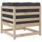 Salon de jardin 4 pcs avec coussins bois de pin massifCet ensemble de canapés de jardin est le complément parfait de votre arrière-cour, terrasse ou patio, offrant un espace confortable et accueillant pour discuter avec la famille et les amis ou simplement se détendre et profiter de l'extérieur. Matériau robuste et durable : le bois de pin massif est connu pour sa résistance et sa durabilité. Ses grains droits et ses noeuds distinctifs contribuent à son charme rustique.Expérience d'assise confortable : ce mobilier d'extérieur, doté de coussins épais, offre une expérience d'assise confortable.Bien ventilé et prévention de l'accumulation d'eau : la conception à lattes favorise une circulation optimale de l'air et empêche efficacement l'accumulation d'eau, assurant ainsi une assise sèche et confortable.Conception modulaire : cet ensemble de meubles d'extérieur a une conception modulaire, ce qui le rend complètement flexible et facile à déplacer, afin que vous puissiez créer un agencement de meubles d'extérieur personnalisé. Bon à savoir :Pour que vos meubles d'extérieur restent beaux, nous vous recommandons de les protéger avec une housse imperméable. Maximum 110 kg par siège. Soyez conscient du risque de feu ouvert et d'autres sources de forte chaleur à proximité de l'appareil.