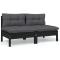 Salon de jardin 4 pcs avec coussins bois de pin massifCe salon de jardin est un excellent choix pour vous détendre et profiter du beau temps, faire une sieste ou discuter avec votre famille ou vos amis. Le salon de patio est fabriqué en bois de pin massif, ce qui le rend robuste et stable. Les coussins ajoutent un confort supplémentaire. Vous pouvez le combiner avec d'autres segments modulaires pour créer vos propres configurations de salon de jardin ! Remarque : afin de prolonger la durée de vie des meubles d'extérieur, nous vous recommandons de les protéger avec une housse imperméable. Maximum 110 kg par siège.