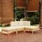 Salon de jardin 4 pcs avec coussins crème Bois de pin massifCe salon de jardin est un excellent choix pour vous détendre et profiter du beau temps, faire une sieste ou discuter avec votre famille ou vos amis. Le salon de patio est fabriqué en bois de pin massif, ce qui le rend robuste et stable. Les coussins ajoutent un confort supplémentaire. Vous pouvez le combiner avec d'autres segments modulaires pour créer vos propres configurations de salon de jardin ! Remarque : afin de prolonger la durée de vie des meubles d'extérieur, nous vous recommandons de les protéger avec une housse imperméable. Maximum 110 kg par siège.