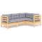 Salon de jardin 4 pcs avec coussins gris Bois de pinCet ensemble de salon de jardin en bois est un choix excellent pour vous détendre et profiter du bon temps, faire une sieste ou discuter avec votre famille ou vos amis. Le salon de patio est fabriqué en bois de pin massif, ce qui le rend robuste et stable. Les coussins ajoutent un confort supplémentaire. Vous pouvez le combiner avec d'autres segments modulaires pour créer vos propres configurations de salon de jardin ! Remarque : afin de prolonger la durée de vie des meubles d'extérieur, nous vous recommandons de les protéger avec une housse imperméable. Maximum 110 kg par siège.