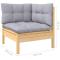 Salon de jardin 4 pcs avec coussins gris Bois de pin massifCe salon de jardin est un excellent choix pour vous détendre et profiter du beau temps, faire une sieste ou discuter avec votre famille ou vos amis. Le salon de patio est fabriqué en bois de pin massif, ce qui le rend robuste et stable. Les coussins ajoutent un confort supplémentaire. Vous pouvez le combiner avec d'autres segments modulaires pour créer vos propres configurations de salon de jardin ! Remarque : afin de prolonger la durée de vie des meubles d'extérieur, nous vous recommandons de les protéger avec une housse imperméable. Maximum 110 kg par siège.