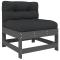 Salon de jardin 4 pcs avec coussins gris bois massifCe salon de jardin en bois, qui se démarque par son design à lattes et ses coussins moelleux, sera un excellent supplément à votre jardin, patio ou terrasse pour profiter d'un moment agréable avec votre famille ou vos amis. Bois de pin massif : le bois de pin massif est un matériau naturel magnifique. Le bois de pin a un grain droit et les noeuds donnent au matériau son aspect caractéristique et rustique.Cadre robuste et stable : le cadre en bois rend l'ensemble de salon robuste et stable pour une utilisation quotidienne à l'extérieur.Expérience d'assise confortable : le dossier et l'accoudoir ajoutent un confort d'assise supplémentaire à l'ensemble de meubles de jardin. De plus, les coussins bien rembourrés vous permettent de vous asseoir confortablement.Design modulaire : le canapé est flexible et facile à déplacer. Vous pouvez le combiner avec d'autres segments modulaires de la boutique en ligne pour créer vos propres configurations de salon de jardin ! Bon à savoir :Pour que vos meubles d'extérieur restent beaux, nous vous recommandons de les protéger avec une housse imperméable. Maximum 110 kg par siège.