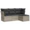 Salon de jardin 4 pcs avec coussins gris clair résine tresséeCet ensemble de canapés de jardin est le complément parfait de votre arrière-cour, terrasse ou patio, offrant un espace confortable et accueillant pour discuter avec la famille et les amis ou simplement se détendre et profiter de l'extérieur. Matériau durable : la résine tressée, également connue sous le nom de poly rotin, est un matériau synthétique solide et nécessitant peu d'entretien qui ressemble au rotin naturel. Il est léger, facile à nettoyer et couramment utilisé pour les meubles d'extérieur en raison de sa durabilité et de ses propriétés de résistance aux intempéries.Fonction de rangement avec sac résistant à l'eau : chaque siège de jardin dispose d'un espace de rangement sous l'assise, complété par un sac résistant à l'eau pour ranger les coussins, les jouets et d'autres objets. Les sacs intérieurs sont dotés d'un couvercle et peuvent être solidement fixés aux sièges à l'aide de bandes auto-agrippantes pour plus de stabilité.Housse amovible et lavable : ces coussins de siège sont dotés de housses amovibles pour un lavage et un entretien faciles.Conception modulaire : cet ensemble de meubles d'extérieur a une conception modulaire, ce qui le rend complètement flexible et facile à déplacer, afin que vous puissiez créer un agencement de meubles d'extérieur personnalisé. Bon à savoir :Pour que vos meubles d'extérieur restent beaux, nous vous recommandons de les protéger avec une housse imperméable.