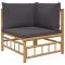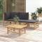 Salon de jardin 4 pcs avec coussins gris foncé bambouSavourez une tasse de café ou de thé par beau temps dans votre espace extérieur avec cet élégant ensemble de salon de jardin en bambou ! Matériau durable : le bambou est connu pour sa flexibilité et sa dureté. Les meubles en bambou sont une bonne option lorsque vous voulez des meubles d'extérieur solides fabriqués à partir de matériaux naturels.Expérience d'assise confortable : le dossier et l'accoudoir ajoutent un confort d'assise supplémentaire pour l'ensemble de canapé de jardin. De plus, les coussins d'assise et de dossier moelleux offrent un confort pendant votre temps d'assise.Table pratique : la table robuste est parfaite pour placer des repas, des boissons et d'autres objets décoratifs.Conception modulaire : l'ensemble de salon est flexible et facile à déplacer, vous pouvez donc le combiner avec d'autres segments modulaires dans la boutique en ligne pour créer vos propres configurations d'ensemble de salon d'extérieur ! Remarque :Pour que vos meubles d'extérieur restent beaux, nous vous recommandons de les protéger avec une housse imperméable.Bon à savoir :Pour faciliter au maximum le montage, chaque produit est livré avec des instructions.