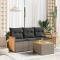 Salon de jardin 4 pcs avec coussins gris résine tresséeCet ensemble de canapés de jardin est le complément parfait de votre arrière-cour, terrasse ou patio, offrant un espace confortable et accueillant pour discuter avec la famille et les amis ou simplement se détendre et profiter de l'extérieur. Matériau durable : la résine tressée, également connue sous le nom de poly rotin, est un matériau synthétique solide et nécessitant peu d'entretien qui ressemble au rotin naturel. Il est léger, facile à nettoyer et couramment utilisé pour les meubles d'extérieur en raison de sa durabilité et de ses propriétés de résistance aux intempéries.Fonction de rangement avec sac résistant à l'eau : le mobilier de jardin dispose d'un espace de rangement sous l'assise, complété par un sac résistant à l'eau pour ranger coussins, jouets et autres objets. Le sac intérieur peut être solidement fixé au mobilier d'extérieur grâce à des attaches auto-agrippantes pour plus de stabilité.Dessus stable et facile à nettoyer : cette table de jardin a un dessus en bois d'acacia robuste, durable et facile à nettoyer avec un chiffon humide.Housse amovible et lavable : ces coussins de siège sont dotés de housses amovibles pour un lavage et un entretien faciles.Conception modulaire : cet ensemble de meubles d'extérieur a une conception modulaire, ce qui le rend complètement flexible et facile à déplacer, afin que vous puissiez créer un agencement de meubles d'extérieur personnalisé. Bon à savoir :Pour que vos meubles d'extérieur restent beaux, nous vous recommandons de les protéger avec une housse imperméable.
