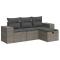 Salon de jardin 4 pcs avec coussins gris résine tresséeCet ensemble de canapés de jardin est le complément parfait de votre arrière-cour, terrasse ou patio, offrant un espace confortable et accueillant pour discuter avec la famille et les amis ou simplement se détendre et profiter de l'extérieur. Matériau durable : la résine tressée, également connue sous le nom de poly rotin, est un matériau synthétique solide et nécessitant peu d'entretien qui ressemble au rotin naturel. Elle est légère, facile à nettoyer et couramment utilisée pour les meubles d'extérieur en raison de sa durabilité et de ses propriétés de résistance aux intempéries.Fonction de rangement avec sac résistant à l'eau : le mobilier de jardin dispose d'un espace de rangement sous l'assise, complété par un sac résistant à l'eau pour ranger coussins, jouets et autres objets. Le sac intérieur peut être solidement fixé au mobilier d'extérieur grâce à des attaches auto-agrippantes pour plus de stabilité.Pouf polyvalent : le tabouret est polyvalent, servant de repose-pieds confortable lorsque vous vous prélassez sur le canapé ou de siège supplémentaire dans votre jardin.Housse amovible et lavable : ces coussins de siège sont dotés de housses amovibles pour un lavage et un entretien faciles.Conception modulaire : cet ensemble de meubles d'extérieur a une conception modulaire, ce qui le rend complètement flexible et facile à déplacer, afin que vous puissiez créer un agencement de meubles d'extérieur personnalisé. Bon à savoir :Pour que vos meubles d'extérieur restent beaux, nous vous recommandons de les protéger avec une housse imperméable.