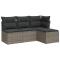 Salon de jardin 4 pcs avec coussins gris résine tresséeCet ensemble de canapés de jardin est le complément parfait de votre arrière-cour, terrasse ou patio, offrant un espace confortable et accueillant pour discuter avec la famille et les amis ou simplement se détendre et profiter de l'extérieur. Matériau durable : la résine tressée, également connue sous le nom de poly rotin, est un matériau synthétique solide et nécessitant peu d'entretien qui ressemble au rotin naturel. Il est léger, facile à nettoyer et couramment utilisé pour les meubles d'extérieur en raison de sa durabilité et de ses propriétés de résistance aux intempéries.Fonction de rangement avec sac résistant à l'eau : chaque siège de jardin dispose d'un espace de rangement sous l'assise, complété par un sac résistant à l'eau pour ranger les coussins, les jouets et d'autres objets. Les sacs intérieurs sont dotés d'un couvercle et peuvent être solidement fixés aux sièges à l'aide de bandes auto-agrippantes pour plus de stabilité.Housse amovible et lavable : ces coussins de siège sont dotés de housses amovibles pour un lavage et un entretien faciles.Conception modulaire : cet ensemble de meubles d'extérieur a une conception modulaire, ce qui le rend complètement flexible et facile à déplacer, afin que vous puissiez créer un agencement de meubles d'extérieur personnalisé. Bon à savoir :Pour que vos meubles d'extérieur restent beaux, nous vous recommandons de les protéger avec une housse imperméable.