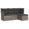Salon de jardin 4 pcs avec coussins gris résine tresséeCet ensemble de canapés de jardin est le complément parfait de votre arrière-cour, terrasse ou patio, offrant un espace confortable et accueillant pour discuter avec la famille et les amis ou simplement se détendre et profiter de l'extérieur. Matériau durable : la résine tressée, également connue sous le nom de poly rotin, est un matériau synthétique solide et nécessitant peu d'entretien qui ressemble au rotin naturel. Il est léger, facile à nettoyer et couramment utilisé pour les meubles d'extérieur en raison de sa durabilité et de ses propriétés de résistance aux intempéries.Fonction de rangement avec sac résistant à l'eau : chaque siège de jardin dispose d'un espace de rangement sous l'assise, complété par un sac résistant à l'eau pour ranger les coussins, les jouets et d'autres objets. Les sacs intérieurs sont dotés d'un couvercle et peuvent être solidement fixés aux sièges à l'aide de bandes auto-agrippantes pour plus de stabilité.Housse amovible et lavable : ces coussins de siège sont dotés de housses amovibles pour un lavage et un entretien faciles.Conception modulaire : cet ensemble de meubles d'extérieur a une conception modulaire, ce qui le rend complètement flexible et facile à déplacer, afin que vous puissiez créer un agencement de meubles d'extérieur personnalisé. Bon à savoir :Pour que vos meubles d'extérieur restent beaux, nous vous recommandons de les protéger avec une housse imperméable.