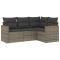 Salon de jardin 4 pcs avec coussins gris résine tresséeCet ensemble de canapés de jardin est le complément parfait de votre arrière-cour, terrasse ou patio, offrant un espace confortable et accueillant pour discuter avec la famille et les amis ou simplement se détendre et profiter de l'extérieur. Matériau durable : la résine tressée, également connue sous le nom de poly rotin, est un matériau synthétique solide et nécessitant peu d'entretien qui ressemble au rotin naturel. Il est léger, facile à nettoyer et couramment utilisé pour les meubles d'extérieur en raison de sa durabilité et de ses propriétés de résistance aux intempéries.Fonction de rangement avec sac résistant à l'eau : le mobilier de jardin dispose d'un espace de rangement sous l'assise, complété par un sac résistant à l'eau pour ranger coussins, jouets et autres objets. Le sac intérieur peut être solidement fixé au mobilier d'extérieur grâce à des attaches auto-agrippantes pour plus de stabilité.Housse amovible et lavable : ces coussins de siège sont dotés de housses amovibles pour un lavage et un entretien faciles.Conception modulaire : cet ensemble de meubles d'extérieur a une conception modulaire, ce qui le rend complètement flexible et facile à déplacer, afin que vous puissiez créer un agencement de meubles d'extérieur personnalisé. Bon à savoir :Pour que vos meubles d'extérieur restent beaux, nous vous recommandons de les protéger avec une housse imperméable.