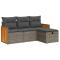 Salon de jardin 4 pcs avec coussins gris résine tresséeCet ensemble de canapés de jardin est le complément parfait de votre arrière-cour, terrasse ou patio, offrant un espace confortable et accueillant pour discuter avec la famille et les amis ou simplement se détendre et profiter de l'extérieur. Matériau durable : la résine tressée, également connue sous le nom de poly rotin, est un matériau synthétique solide et nécessitant peu d'entretien qui ressemble au rotin naturel. Elle est légère, facile à nettoyer et couramment utilisée pour les meubles d'extérieur en raison de sa durabilité et de ses propriétés de résistance aux intempéries.Fonction de rangement avec sac résistant à l'eau : chaque siège de jardin dispose d'un espace de rangement sous l'assise, complété par un sac résistant à l'eau pour ranger les coussins, les jouets et d'autres objets. Le sac intérieur est doté d'un couvercle et peut être solidement fixé au siège à l'aide de bandes auto-agrippantes pour plus de stabilité.Pouf polyvalent : le tabouret est polyvalent, servant de repose-pieds confortable lorsque vous vous prélassez sur le canapé ou de siège supplémentaire dans votre jardin.Housse amovible et lavable : ces coussins de siège sont dotés de housses amovibles pour un lavage et un entretien faciles.Cadre robuste et stable : le cadre en acier enduit de poudre est solide, stable, durable et résistant à la corrosion et aux intempéries, ce qui garantit des performances durables. Bon à savoir :Pour que vos meubles d'extérieur restent beaux, nous vous recommandons de les protéger avec une housse imperméable.
