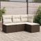 Salon de jardin 4 pcs avec coussins marron résine tresséeCet ensemble de canapés de jardin est le complément parfait de votre arrière-cour, terrasse ou patio, offrant un espace confortable et accueillant pour discuter avec la famille et les amis ou simplement se détendre et profiter de l'extérieur. Matériau durable : la résine tressée, également connue sous le nom de poly rotin, est un matériau synthétique solide et nécessitant peu d'entretien qui ressemble au rotin naturel. Il est léger, facile à nettoyer et couramment utilisé pour les meubles d'extérieur en raison de sa durabilité et de ses propriétés de résistance aux intempéries.Fonction de rangement avec sac résistant à l'eau : chaque siège de jardin dispose d'un espace de rangement sous l'assise, complété par un sac résistant à l'eau pour ranger les coussins, les jouets et d'autres objets. Les sacs intérieurs sont dotés d'un couvercle et peuvent être solidement fixés aux sièges à l'aide de bandes auto-agrippantes pour plus de stabilité.Housse amovible et lavable : ces coussins de siège sont dotés de housses amovibles pour un lavage et un entretien faciles.Conception modulaire : cet ensemble de meubles d'extérieur a une conception modulaire, ce qui le rend complètement flexible et facile à déplacer, afin que vous puissiez créer un agencement de meubles d'extérieur personnalisé. Bon à savoir :Pour que vos meubles d'extérieur restent beaux, nous vous recommandons de les protéger avec une housse imperméable.