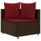 Salon de jardin 4 pcs avec coussins marron résine tresséeCet ensemble de canapés de jardin est le complément parfait de votre arrière-cour, terrasse ou patio, offrant un espace confortable et accueillant pour discuter avec la famille et les amis ou simplement se détendre et profiter de l'extérieur. Matériau durable : la résine tressée, également connue sous le nom de poly rotin, est un matériau synthétique solide et nécessitant peu d'entretien qui ressemble au rotin naturel. Elle est légère, facile à nettoyer et couramment utilisée pour les meubles d'extérieur en raison de sa durabilité et de ses propriétés de résistance aux intempéries.Cadre robuste et stable : le cadre en acier enduit de poudre est solide, stable, durable et résistant à la corrosion et aux intempéries, ce qui garantit des performances durables.Conception modulaire : cet ensemble de meubles d'extérieur a une conception modulaire, ce qui le rend complètement flexible et facile à déplacer, afin que vous puissiez créer un agencement de meubles d'extérieur personnalisé.Expérience d'assise confortable : ce mobilier d'extérieur, doté de coussins épais, offre une expérience d'assise confortable. Bon à savoir :Pour que vos meubles d'extérieur restent beaux, nous vous recommandons de les protéger avec une housse imperméable. Maximum 110 kg par siège.